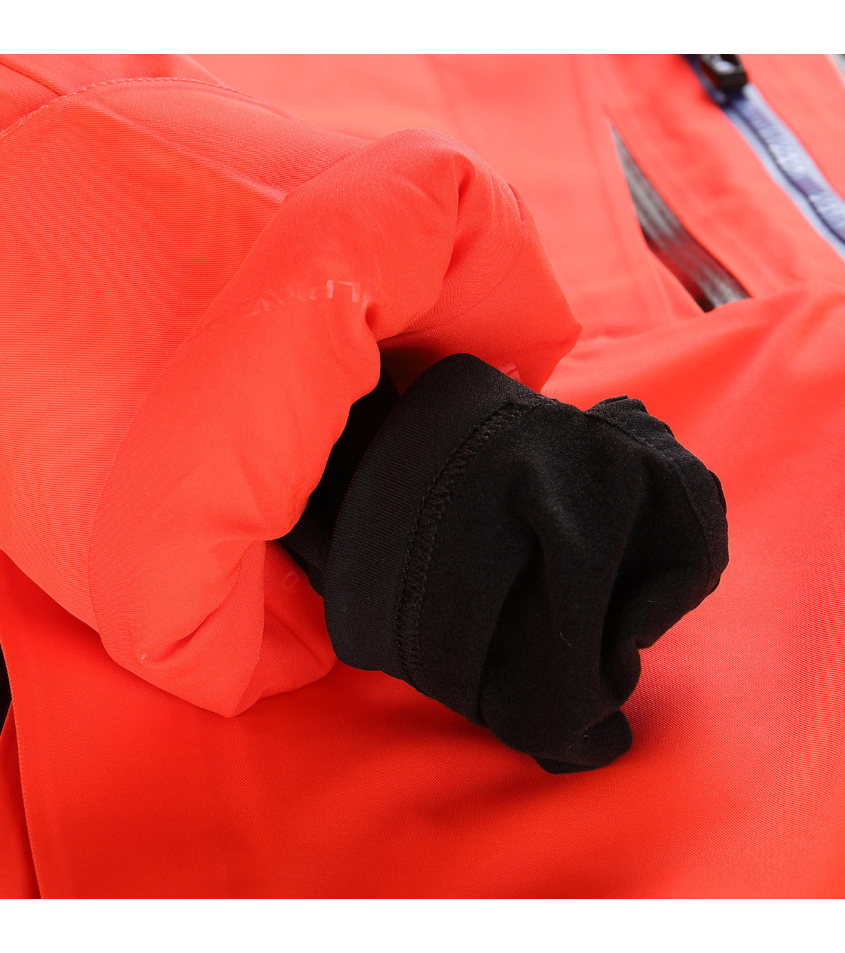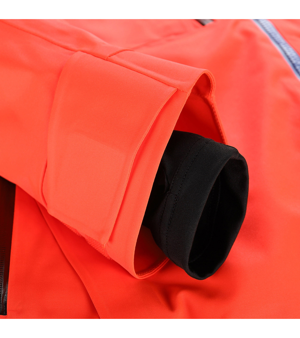 Odopínateľná snehová manžeta, ktorá zabraňuje prenikaniu snehu pod odev. V spodnej časti je našitá elastická protišmyková guma.