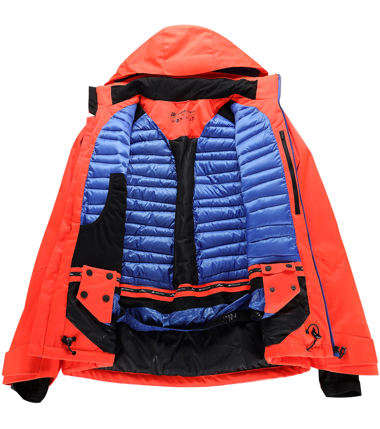Pánska lyžiarska bunda je navrhnutá pre náročných lyžiarov, ktorí očakávajú maximálnu funkčnosť a spoľahlivú ochranu v horách. Je vyrobená z pružného, vodoodpudivého, nepremokavého a vetruodolného materiálu s vysoko odolnou membránou PTX SNOW (vodný stĺpec 20 000 mm, paropriepustnosť 15 000 g/m²/24 h, Ret < 6) a povrchovou úpravou DWR, ktorá zaisťuje dlhodobú ochranu pred vlhkosťou. Stredná hrejivá výplň a kontrastná prešívaná podšívka poskytujú komfort a tepelný komfort aj v chladných podmienkach.