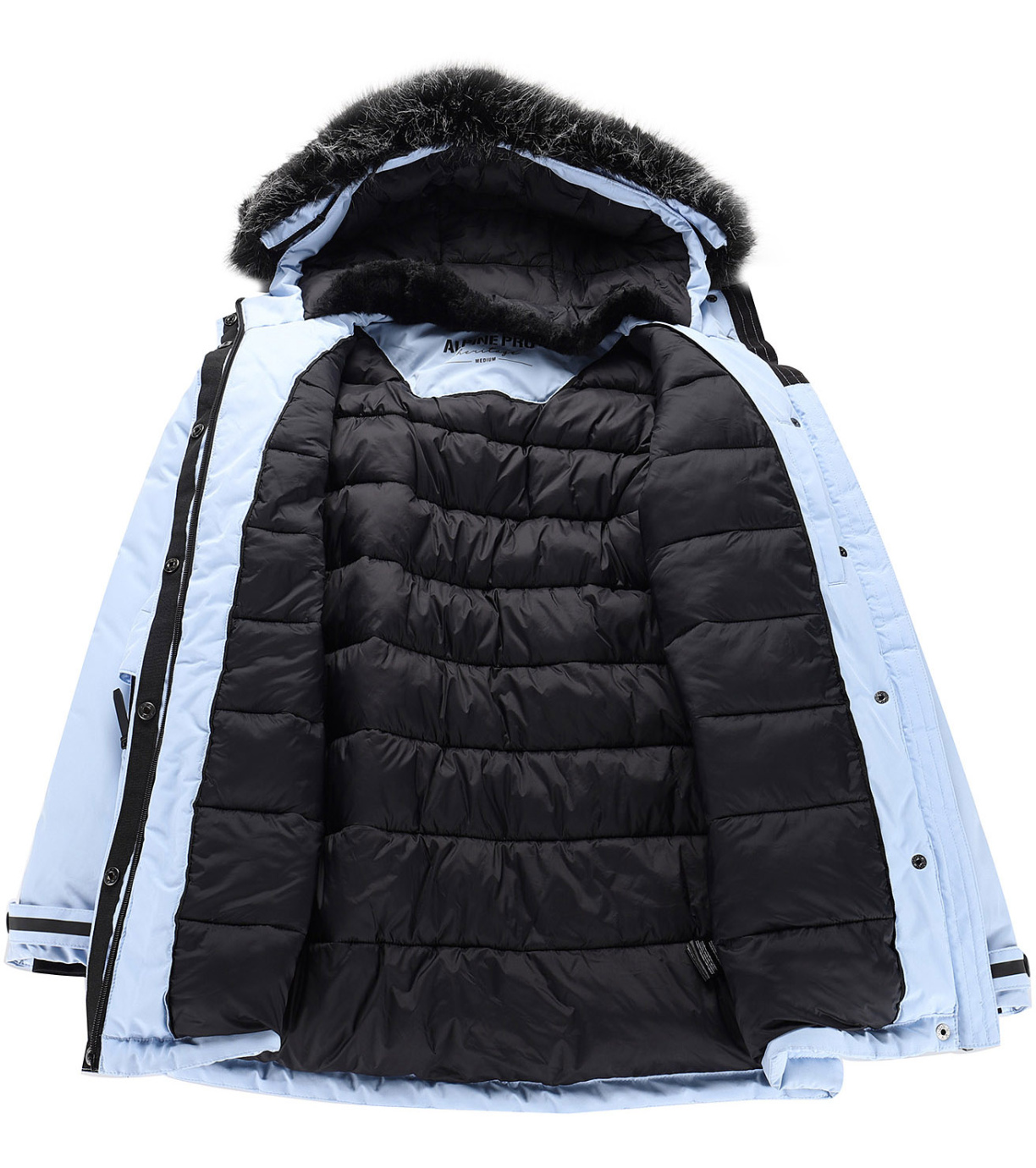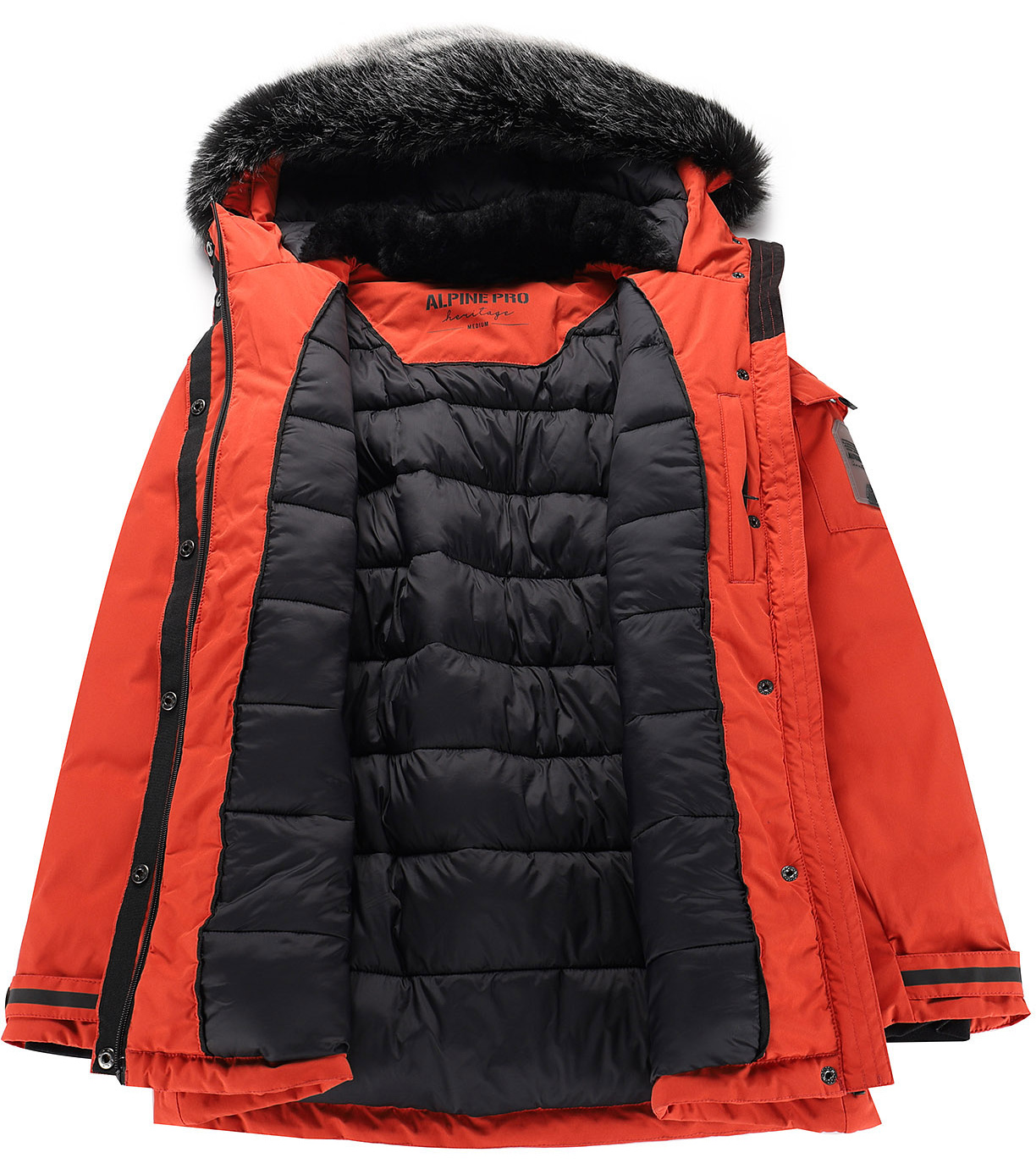 Silná hrejivá výplň spolu s prešívanou podšívkou a vnútorným golierom z mäkkého materiálu poskytujú vysoký tepelný komfort. Bunda má polopriliehavý strih, neodopínateľnú kapucňu s odopínateľnou kožušinou, rukávy s vnútornými manžetami z úpletu a možnosť regulácie spodného okraja pomocou gumičky.